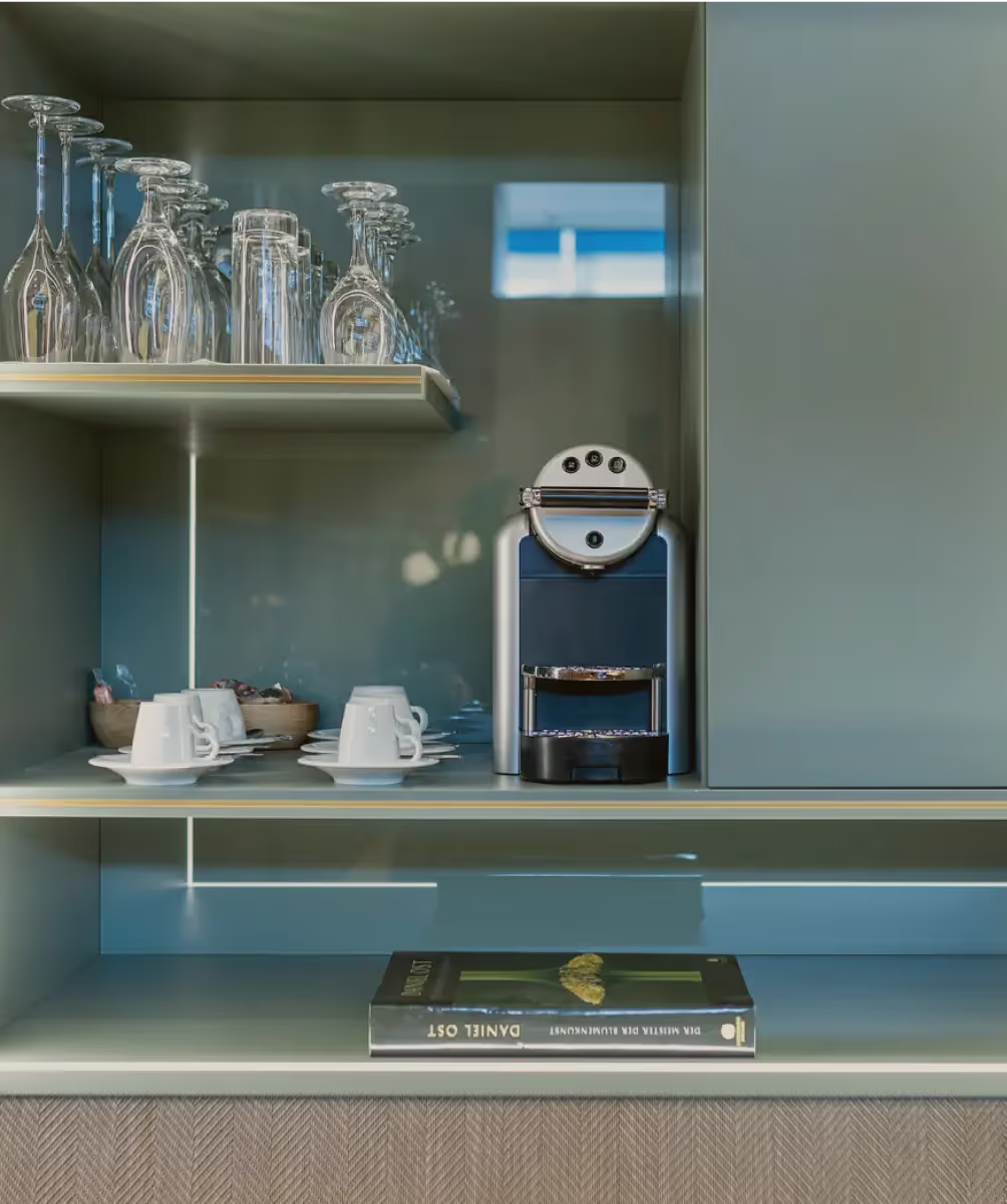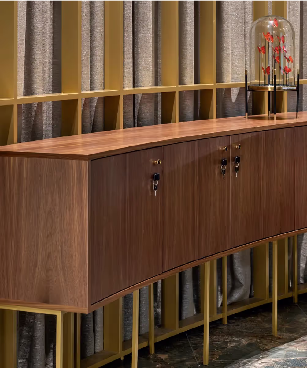 Dressers and wall coverings - made to measure and sensitively combined to create a tangible sense of elegance.