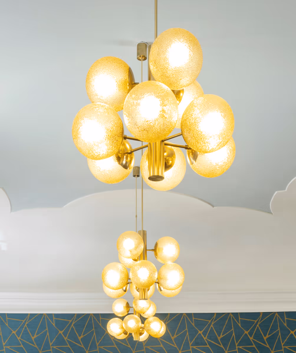 Passen hervorragend zu dem eklektischen Einrichtungsstil: historische Mid Century-Modern-Strukturglasleuchten.