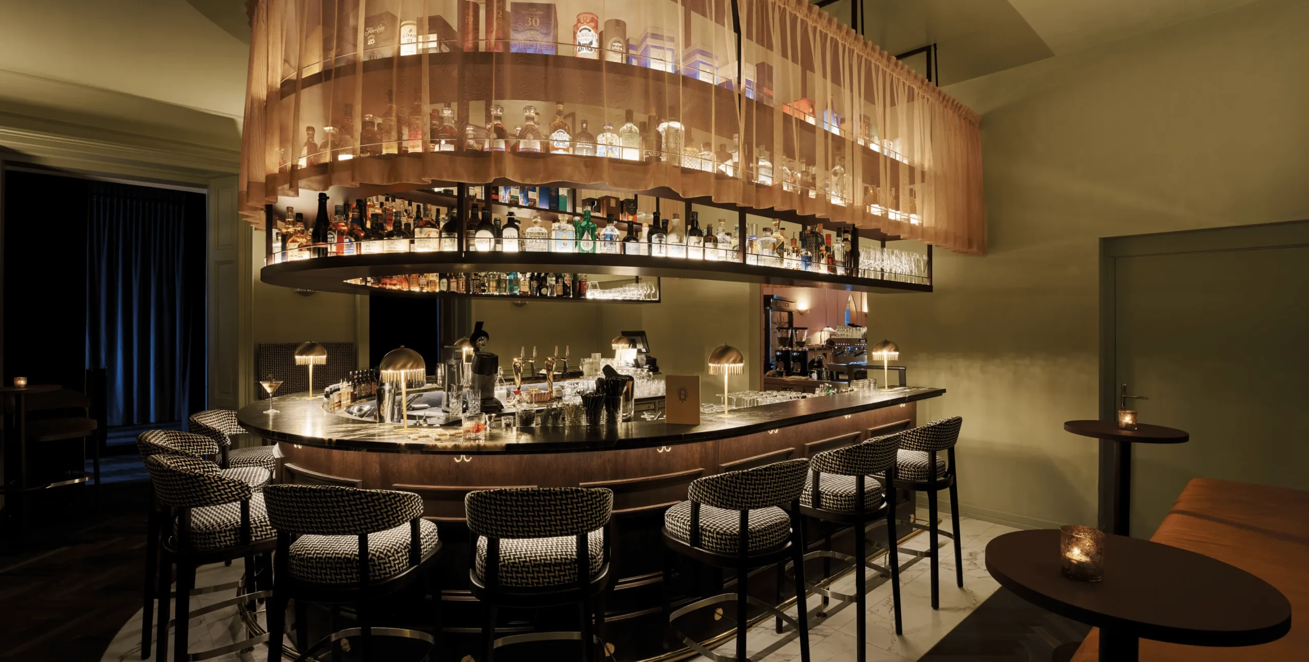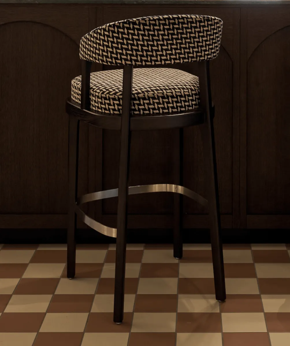 Ein Barhocker mit eleganter Silhouette und gemustertem Polster fügt sich harmonisch in das traditionelle Ambiente ein. Hochwertige Materialien und durchdachtes Design machen ihn zu einem stilvollen Akzent mit modernem